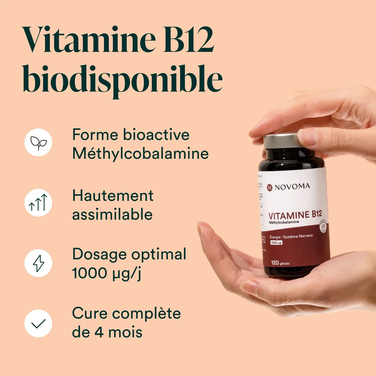 Notre complément contient exclusivement de la méthylcobalamine, la forme active et naturellement biodisponible de la vitamine B12.