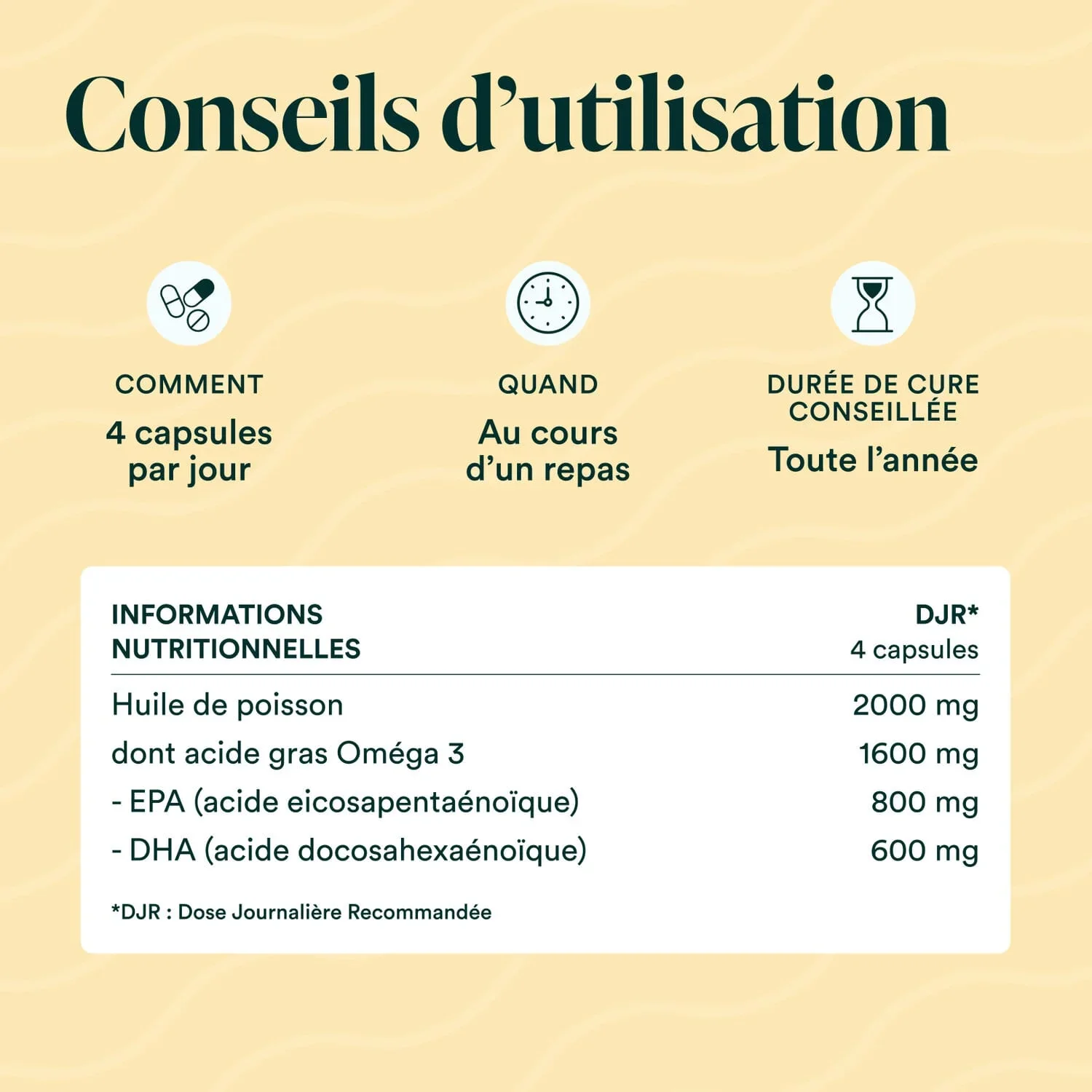 800 mg d’EPA + 600 mg de DHA par jour – 1 mois de cure