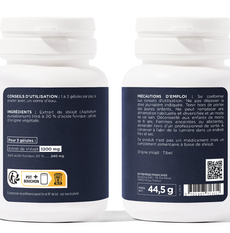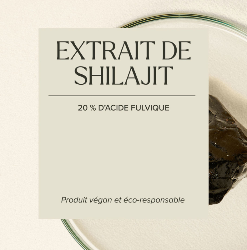 Boostez votre quotidien avec l’or noir de l’Himalaya. Avec 20% d’acide fulvique, notre Shilajit est l’adaptogène idéal pour soutenir la vitalité, l’endurance, l’immunité et la résistance au stress physique et mental.