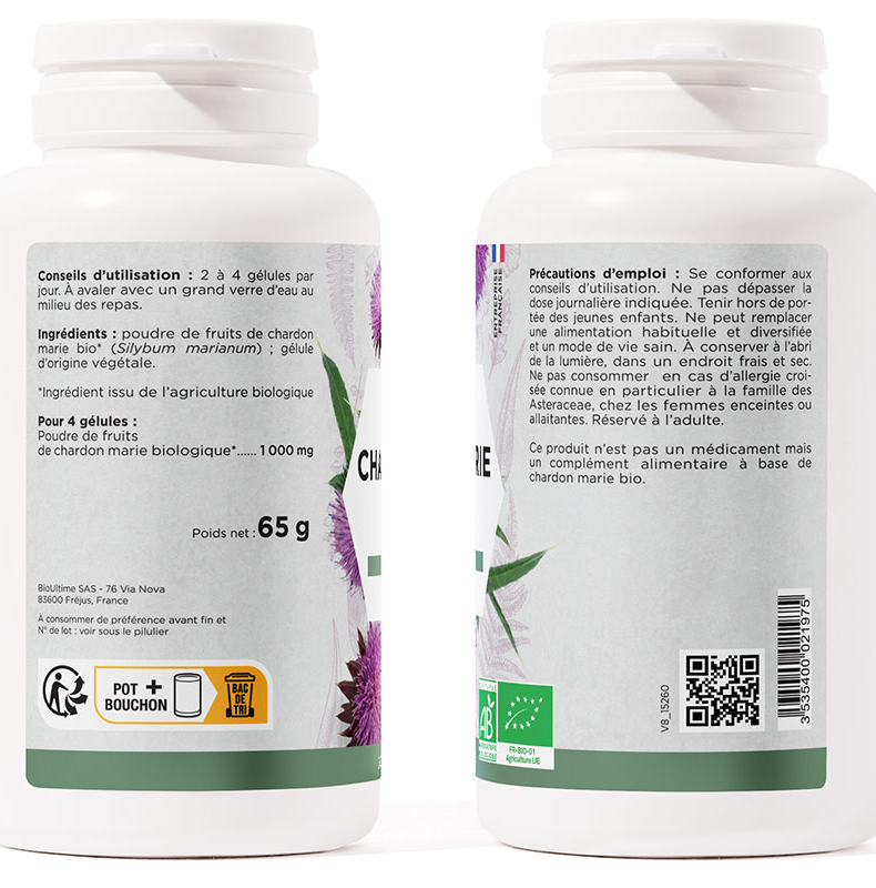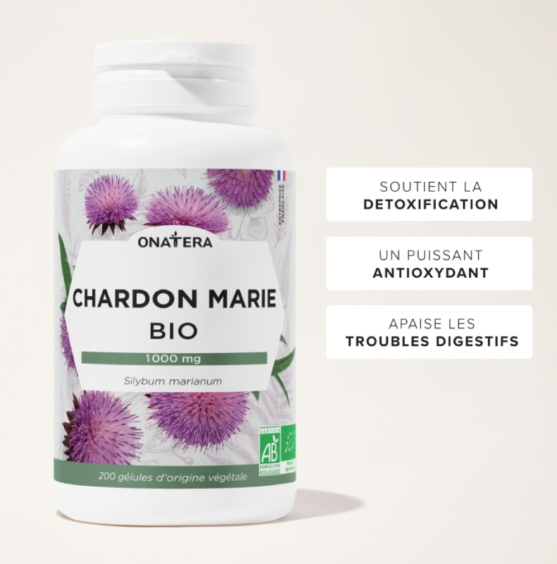Notre Chardon Marie BIO renferme un complexe hépato-protecteur unique, la Silymarine, 100% naturel et hautement dosé. C’est l’allié idéal pour soutenir les fonctions hépatiques et favoriser une digestion légère.